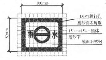 標(biāo)識權(quán)屬單位“銘牌”的標(biāo)識牌可采用不銹鋼材質(zhì),厚度為2mm,局部根據(jù)圖案和文字作腐 蝕磨砂處理。采用自攻螺釘固定于隱形井蓋鋪裝 層上,必要時(shí)背面涂強(qiáng)力膠,安裝時(shí)應(yīng)保持標(biāo)識 牌四邊與鋪裝走向一致。若是燃?xì)夂碗娏畼?biāo)識 牌圖案部分采用沖壓工藝使之內(nèi)凹0.5mm,凹槽內(nèi)應(yīng)涂刷紅色反光漆。